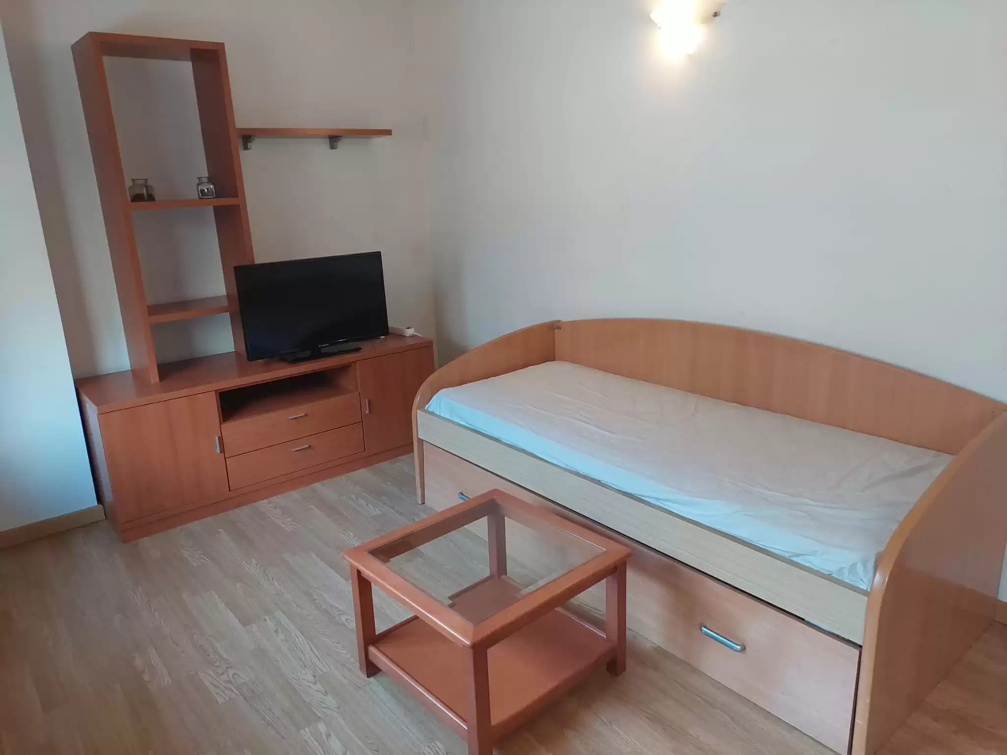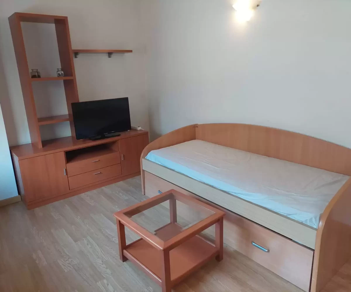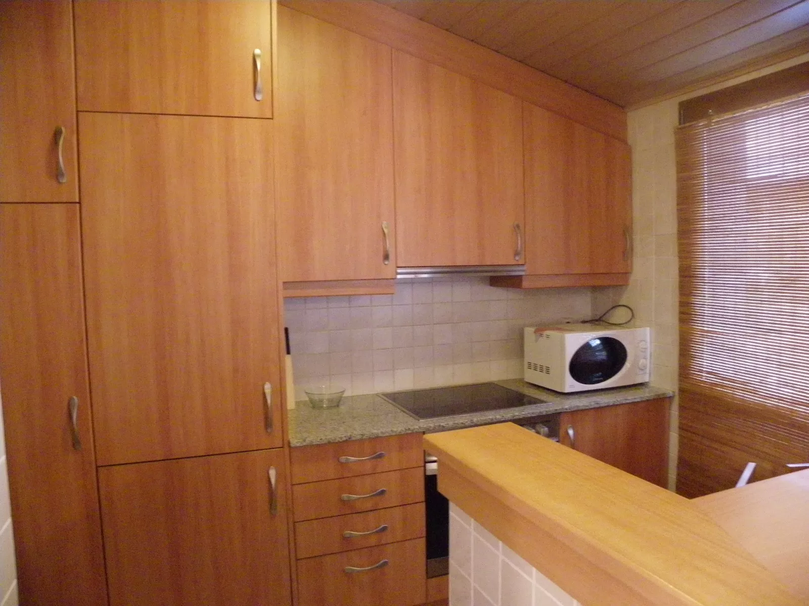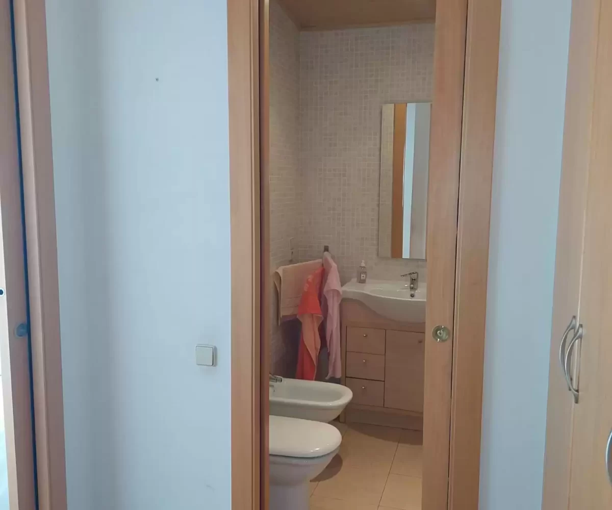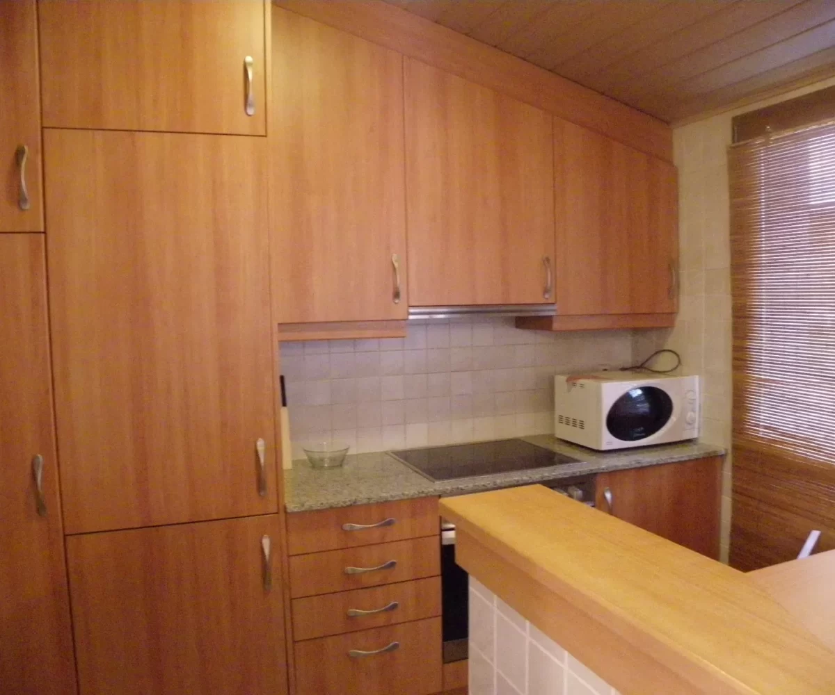 L’apartament es distribueix en: rebedor, saló menjador amb sostres sota teulada i cuina oberta, completament equipada amb armaris per emmagatzematge, vitro de 4 focs, forn, nevera panelada, i espai per a rentadora i caldera.